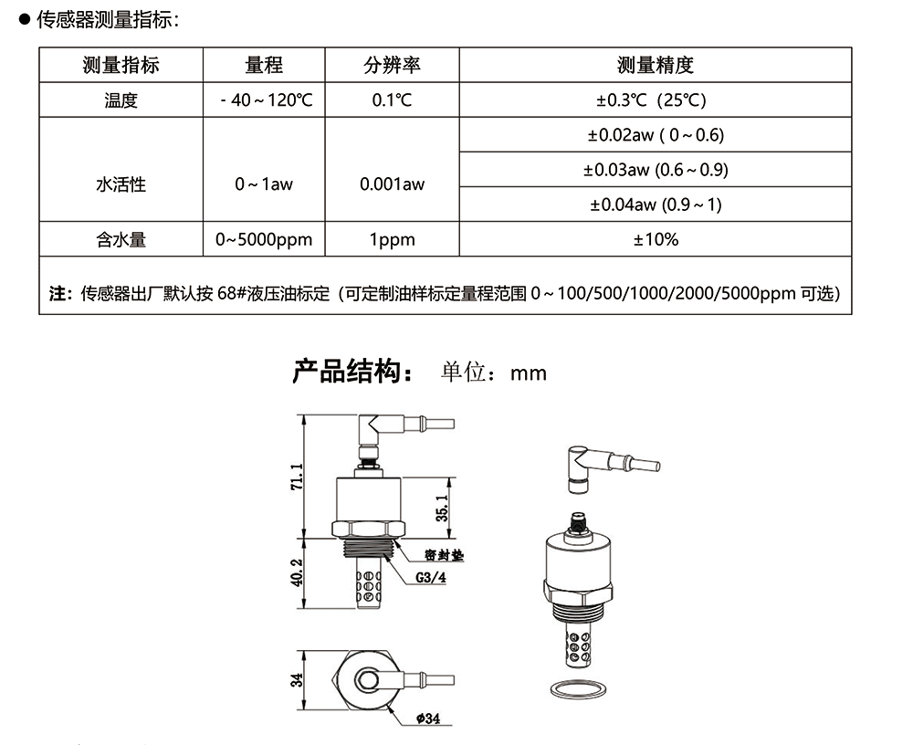 监测大型连续作业设备、重型机械装备等设备中润滑油及液压油的水分,对保障这些关键设备的正常运行有着不可替代的作用。因为水分的存在会破坏油膜造成添加剂失效,引起金属部件的腐蚀,减短油液使用寿命,严重甚至会使大型机械非计划停车,造成严重的安全事故及经济损失。对于发电机组、变压器,水分会破坏油的绝缘特性,对电力设备及人员的安全构成威胁。微量水分传感器前端设计独特的水分感应探头可以实时捕捉油水混合物的电学特性变化,并通过高精度温度探头进行数据补偿,经过优化算法获取油中水分含量。公司特有的专利测量技术,可成功实现多量程油中水分含量的精确监测。